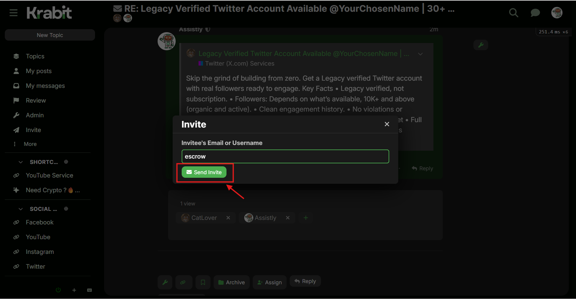 This private message thread becomes the escrow room.